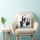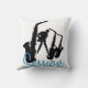 Sax forming the word "J(a)zz" with saxophonist for A. Black design with Blue "Session" word and white background (customisable) on square pillow.