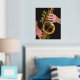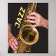 For the jazz music fan! Accent a living space with this foil print that features the photographic image of a jazzman playing his time-worn, gold coloured, tenor saxophone horn along with the word "JAZZ" printed in gold foil. Select your print size as well as foil print colour. Frame not included.
