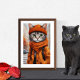 Poster featuring vivid fantasy artwork of a jazzy tabby cat dressed in warm autumn attire. Created by the human designer Alma Wad using Canva AI, this whimsical design captures the cosy charm of fall. Perfect for cat lovers, especially those who enjoy playful, amusing cats and the vibrant hues of autumn. A unique and heartwarming wall decor for the season!