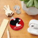 Slick kitty design with black heart and red background.