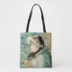 Jeanne (Spring). Edouard Manet . Portrait of a woman in green tones. There is a woman standing on a hillock with an umbrella in her hands and a cute hat. There are trees behind her. Reproduction of famous works of art images in the public domain.