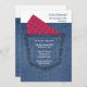 This stylish western party invitation features a blue jeans pocket background with a red bandanna tucked inside. It's perfect for any western-themed celebration for children or adults. The card is easy to customise with your wording, font, font colour and choice of six paper types.