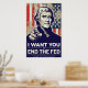 Reminiscent of the famous Uncle Sam "I Want You" image, Thomas Jefferson - a great enemy of central banking schemes - points to the viewer exclaiming "I Want You to End the Fed."