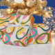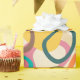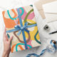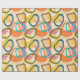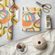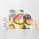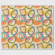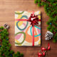 This wrapping paper has a mid-century modern design of “deformed” circles in retro colours overlapping each other and repeating in the design.