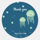 Cute Fun Blue-Green Jellyfish Party Thank You Square Sticker