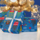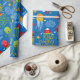 Silly, colourful, fun, whimsical jellyfish and octopus with sombreros, derby hats, curly hair, eyes, smiles, and some wearing shoes on a blue background with stars of red and gold.