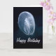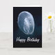 A birthday card that features a jellyfish floating with the underside of its umbrella shaped structure exposing its translucent organs brightly lit with a blue hue from above, close to the surface of the sea.