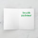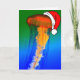 A fun Christmas greeting card featuring a colour photo of a jellyfish wearing a Santa hat on the front and a message on the inside