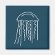 Cute white outline art jellyfish on navy blue backgound. This marine theme aquatic sea life theme modern art is cute and funky. You wish jellyfish.