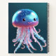 This jellyfish notbook design features a mesmerising underwater scene with a vibrant, glowing jellyfish as the focal point. The jellyfish's tentacles gracefully flow across the fabric, creating a sense of movement. The intricate details and luminescent colours of the jellyfish give the design a magical, otherworldly feel, perfect for ocean lovers or anyone looking for a unique, nature-inspired piece. The blend of soft blues, purples, and hints of neon creates a striking contrast against a dark background, making the jellyfish appear as if it’s glowing in the deep sea.