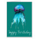 Cute aquatic design of under the sea theme blue jellyfish from original watercolor art work. Colorful, beautiful fish art theme sea life design.