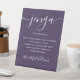Jenga Wedding Guestbook Elegant Script Purple Pedestal Sign