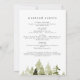 This bachelorette invitation and itinerary template features rustic watercolor pine trees and a rustic handwritten font.