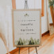 This wedding welcome sign features rustic watercolor pines and a bohemian handwritten font.