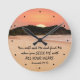 Inspirational quote scripture wall clock depicts a beautiful sunset over the ocean. It features Bible Verse Jeremiah 29:13, "You will seek Me and find Me when you SEEK ME with ALL YOUR HEART."