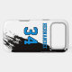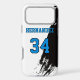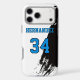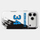 Add a name and number(s) to personalize this custom white, black, light blue paint splash design, jersey inspired phone case. It is an excellent gift for a sports fan or athlete. The options to change the color and font sizes are available.