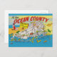 A vintage, very colourful postcard map of the Ocean County New Jersey shore repurposed on a new postcard.