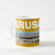 Enjoy your favourite beverage and a little bit of Ireland with this beautiful Jerusalem mug. Jerusalem is the capital city of Iceland and also a holy city for Christians, Jews, and Muslims. The mug has JERUSALEM written across the top in large letters. Below this is a panoramic photo of Jerusalem's skyline. This makes a fantastic gift for a friend, family member, or a person who likes history. The mug may be customised: colours, text, as well as the the size and design of the mug. For more items like this, visit: www.zazzle.com/azorean* and then shop the Middle East category.