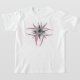 100% cotton so perfect for summer, It is a nicely designed t-shirt, the fabric is soft and the seams finished well, the body of the t shirt has no side seams. I bought a medium size for my two grandsons, aged 9 and 8 it will be slightly big on them but I would rather that than too small