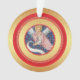 A Mediaeval illustration of and angel in heaven. Colourful illustration for a Jesse Tree Advent Calendar. Golden foil look accent.