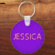 Jessica name in pink glowing neon lights. Set on a purple light beam background.