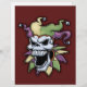 Evil jester skull with big evil grin. Original pen & ink drawing, with digital Mardi Gras colours. T-shirts, sweats, mugs, gift items.