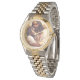 The watch is very nice, the picture is great and the watch looks like quality. The only problem I am having with it is that it is a little too large, and I also can't figure out how to open the clasp. No directions came with it. Very good. The printing is perfect and the watch keeps good time.