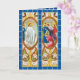 Wish family and friends a "Happy Easter" with this handsome religious card simulating stained glass in rich aqua blues, warm golden yellows, bright spring greens, and bronze. Done in the Liberty Style, the British version of Art Nouveau, two long rectangular panels with figured scenes arranged side by side represent Jesus appearing in the Upper Room on Easter evening on the left and the astounded Apostles on the right in oval frames surrounded with stylised greenery. + Inside: A large panel with stylised Easter lilies. Image Credit (RT 02): Antique images from an embossed postcard in chromolithography entitled A Joyful Easter, Easter Hymns Series, No. 714, originally published by Raphael Tuck & Sons, London, England, and printed in Saxony, Germany, 1912, from the designer’s private collection.