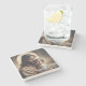 The coasters are gorgeous, a quality feel and heavy weight. They look like a precious archeological find. A rustic stone juxtaposed with a modern floral black and white print. I like the way the print goes slightly imperfect on the cut stone edges giving them a kind-of natural beauty.
