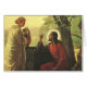 Vintage illustration religious design featuring Jesus Christ speaking with a lady. Christ and his disciples travelled northward through Samaria where he stopped at Jacob's well and spoke with a woman, a good Samaritan.