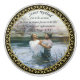 Jesus and John together in the mountains baptising Jesus in a small lake.With a flat meadow and tree behind them.