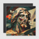 Cette carte est ornée de l'image de Jésus Christ. Elle est représentée par des formes géométriques complexes et des couleurs vives, avec des parties du corps décomposées et représentées sous différents angles. Cela crée une impression de mouvement et de profondeur, tout en ajoutant une touche artistique unique.