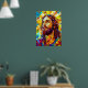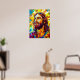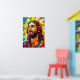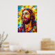 Stained Glass Art of Jesus Christ with a cute easter bunny and vibrant easter eggs. Cute rabbit animals for the resurrection of the christian religion. Happy Easter! Vibrant Easter Poster.
