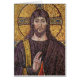 A mosaic of Jesus Christ holding the flame of the Holy Spirit. Vintage fine art Ravenna Italy mosaic in subdued colours.