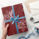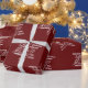 Add a reminder of the best gift ever to your gifts this Christmas with this simple festive gift wrap featuring white names of Jesus arranged in the shape of a star on a red background.