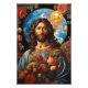 MODERN day JESUS showing concern about the state of affairs on EARTH. He is surrounded with FLOWERS and Cosmic Elements.