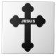 JESUS IN WHITE TEXT ON A BLACK CROSS