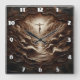 Jesus Crucifixion Over Stormy Ocean Waves Square Wall Clock