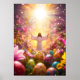 happy Easter with the resurrection of Jesus Christ with vibrant easter eggs and flowers.