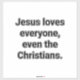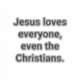 Jesus loves everyone, even the Christians. Comic-Social-Commentary Splash-Art Vinyl sticker-design by Jeff Hankamer at Artjunkhaus
