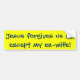 Jesus forgives us all, except my ex-wife! bumper sticker