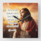 This inspiring clock face features Jesus Christ with clasped hands, gazing skyward amidst a powerful, golden divine light. The profound quote from "Ephesians 2:10" states: "For we are God's handiwork, created in Christ Jesus to do good works, which God prepared in advance for us to do". Black numerals mark the hours, blending divine purpose with a daily reminder of spiritual calling.