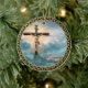 Jesus hanging from a christian crucifixion cross. ceramic ornament