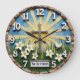 Celebrate the joy of the resurrection with this high-energy and vibrant spiritual wall clock. The central face features a high-definition graphic of a silver-style cross set against a radiant yellow sunburst and a serene blue sky. Blooming white lilies, lush green grass, and a symbolic white dove complete the scene above the "he is risen" proclamation. While the artwork masterfully mimics the textured look of a palette-knife oil painting and the outer rim appears to be crafted from multi-toned rustic river stones, this is a lightweight and durable graphic timepiece rather than actual stone or layered plaster. The bold white numeric markers provide exceptional contrast against the colourful background, ensuring the time is easy to read at a glance. This professional timepiece serves as an inspiring focal point for any living space, making it a meaningful self-gift for those celebrating the Easter season.
