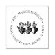 This is a beautiful personalised name stamp with the three religious symbolic images of the Sacred Heart of Jesus, Immaculate Heart of Mary, and Chaste Heart of St. Joseph.