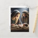 Mary, Joseph and baby Jesus in the manger religious Christmas postcard. Inside the card is the Bible verse “And there were shepherds out in the field, keeping watch by night. And an angel of the Lord appeared to them, and the glory of the Lord shone around them.” – Luke 2:8-9.
