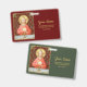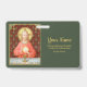In this splendid image, Jesus sits at a table that is set for Passover and covered in a blue and white plaid cloth. He is clad in an eye-catching, soft red garment. It is Maundy or Holy Thursday and His Last Supper with His apostles. It is the moment at which He institutes the sacrament of Holy Communion or the Eucharist. + The figure of Jesus is isolated against a dark red background patterned with stylised artichokes in diamond shapes. The mood here is solemn. Lifting his eyes to heaven, Jesus raises his right hand in blessing. In his left, He holds up a large host, the Eucharistic bread, over the chalice filled with wine. In Latin--in a banderole beneath the scene--are the words of Consecration: “This is My Body… This is My Blood” (“Hoc est corpus meum… Hic est sanguis meus”). In remembrance of Him, at every Mass, the priest reenacts this sacred action turning ordinary bread and wine into Christ’s Body and Blood. + Image Credit (SAU 045): Antique devotional print of Jesus Instituting the Holy Eucharist, originally published in chromolithography by the Socièté de St. Augustin, Bruges, Belgium, late 19th century, from the designer’s private collection of religious ephemera.