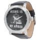 This wall clock combines strong religious faith with the trucking lifestyle. Set against a black background, it features a graphic of a semi-truck with a bold cross symbol behind it. The powerful statement "JESUS IS MY AIRBAG" is prominently displayed in distressed white lettering, making it a meaningful and distinctive piece for any devout truck driver or individual who trusts in divine protection on the road.