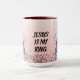 Jesus Is My King - Custom Text Floral Mug. This is a faith scripture mug, with the a personalised statement and a pair of Orchids on a pink and gold sprinkle background. This is one for the ladies, and a great gift for her..