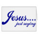 Jesus t-shirts and gifts for men, women, and kids. Mugs, tote bags, caps, aprons, buttons, stickers, and more that feature the saying Jesus....just saying.
